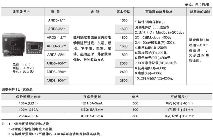 | ARD3T輔助電源 | AC/DC 110 / 220V或AC 380V,功耗≤15VA | ||