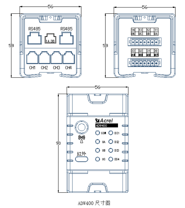 ADW400方便用戶進(jìn)行用電監(jiān)測、集抄和管理,特別適合環(huán)保監(jiān)管類的廠區(qū)智能監(jiān)管改造項(xiàng)目,可廣泛應(yīng)用于化工廠、制藥廠、鋼鐵廠、養(yǎng)殖廠等產(chǎn)污制污的工廠。訂貨范例: