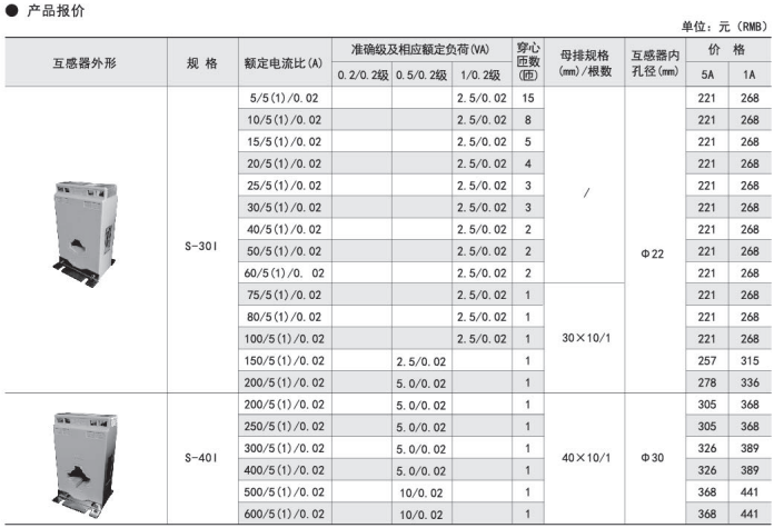 | S-40I | 200/5(1)/0.02 | 5.0/0.02 | 1 | 40×10/1 | φ30 | C,F | ||