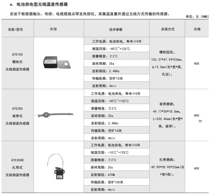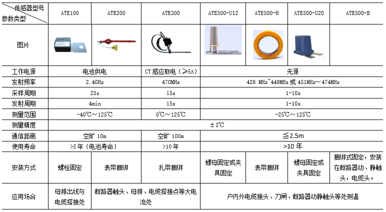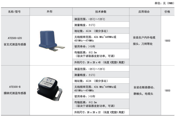 適用于高低壓開關(guān)柜內(nèi)電纜接頭、斷路器觸頭、刀閘開關(guān)、高壓電纜中間頭、干式變壓器、低壓大電流等設(shè)備的溫度監(jiān)測。訂貨范例: