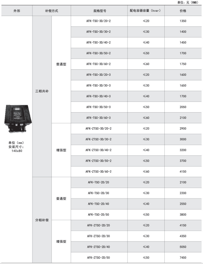 具體型號(hào):AFK-TSC-3D/50-2,三相共補(bǔ),普通型