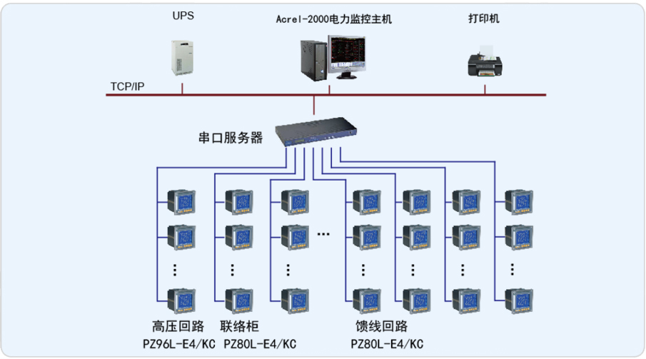 安科瑞電氣股份有限公司于2012年9月承接了現(xiàn)代海門制藥電力監(jiān)控系統(tǒng)的設(shè)計(jì)與實(shí)施。系統(tǒng)采用Acrel-2000電力監(jiān)控系統(tǒng),實(shí)現(xiàn)了對(duì)高壓配電回路安裝的安科瑞PZ96L-E4/KC儀表及低壓進(jìn)線、聯(lián)絡(luò)、饋線回路安裝的PZ80-E4/KC儀表進(jìn)行遠(yuǎn)程監(jiān)測(cè),整個(gè)系統(tǒng)采用分層絡(luò)分布式結(jié)構(gòu),實(shí)現(xiàn)了對(duì)海門制藥用電運(yùn)行的遠(yuǎn)程監(jiān)控和集中管理。