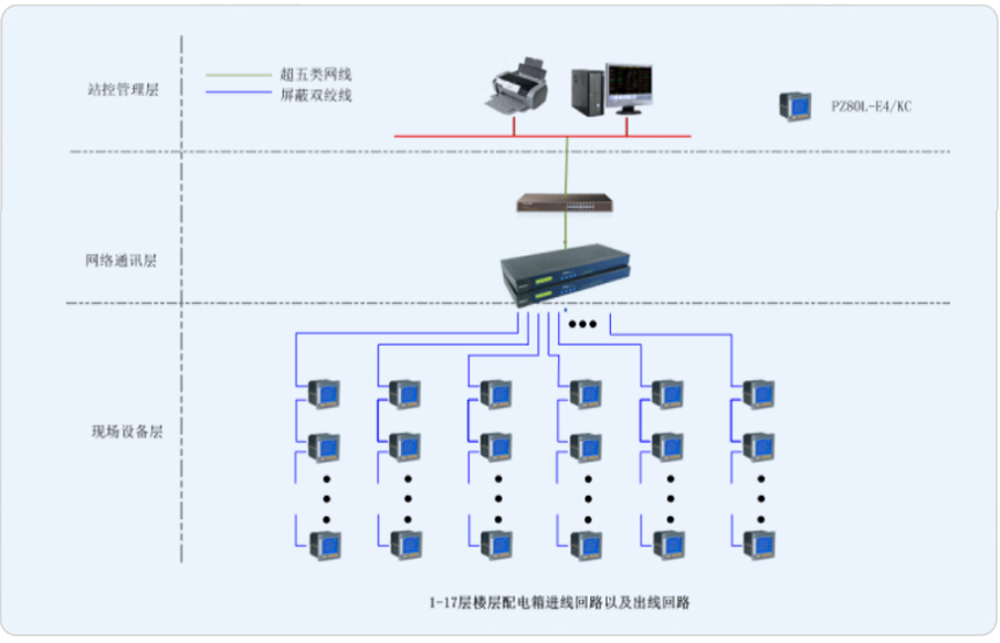 針對普天大廈的辦公樓性質(zhì),為了便于物業(yè)后期對用能的管理,以及上層管理人員對大廈能耗趨勢的及時了解;設計一套能耗管理系統(tǒng)檢測大樓內(nèi)各重要用電回路的用能情況,通過日、月、年報表,同比環(huán)比等形式顯示大樓的用能狀況。