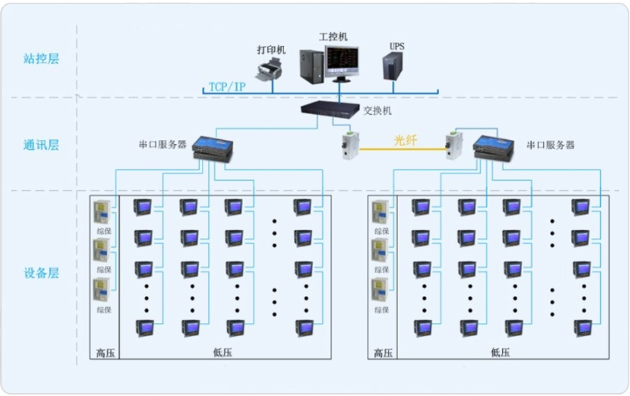 本系統(tǒng)主要監(jiān)測新建3.6萬KL/年精品啤酒項目聯(lián)合車間,該車間共有2組變壓器。3臺AM5微機保護裝置,5只ACR330ELH、41只ACR120EL、4只PZ72L-AI3多功能電力儀表接入電能管理系統(tǒng)。通訊總線直接接入變電所內(nèi)串口服務器,從而儀表與監(jiān)控主機的數(shù)據(jù)連通。安科瑞電氣股份有限公司為其配置一套Acrel-3000電能管理系統(tǒng),實時監(jiān)測變電所內(nèi)各個回路的電流、電壓、功率、開關狀態(tài)等電參量,由此達到變電所少人值守或無人值守的智能化管理。