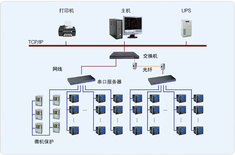 1. 對供配電系統(tǒng)運行的基礎數據采集,包括電氣設備的模擬量(電流、電壓、功率、電度、頻率等)和開關量(斷路器及隔離開關位置信號、繼電保護及自動裝置信號、設備運行狀態(tài)信號、以及各種事件信息等),并對采集的所有數據進行顯示、統(tǒng)計、分析、計算和存儲,并及時對發(fā)生的各種異常狀況進行報警提示,確保整個配電系統(tǒng)安全、可靠的運行;