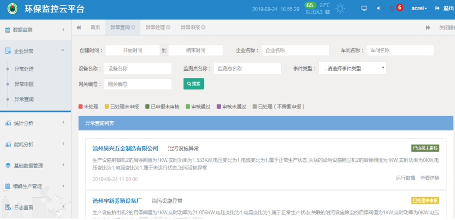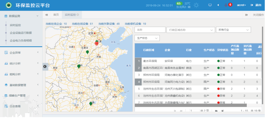 全面推進打贏藍天保衛(wèi)戰(zhàn),打好碧水保衛(wèi)戰(zhàn),打勝凈土保衛(wèi)戰(zhàn),加快生態(tài)環(huán)境保護、建設(shè)美麗中國。環(huán)保用電監(jiān)管系統(tǒng)針對企業(yè)內(nèi)的環(huán)保設(shè)施、設(shè)備運行狀況進行檢測,發(fā)揮環(huán)保設(shè)備的作用,提高監(jiān)察效率,并能夠動態(tài)掌握治污治理執(zhí)行情況和異常預(yù)警提供支持,安科瑞憑借監(jiān)控領(lǐng)域里多年的技術(shù)力量和豐富經(jīng)驗,創(chuàng)新研發(fā)了AcrelCloud-3000環(huán)保設(shè)施用電監(jiān)管云平臺,依托快速發(fā)展的物聯(lián)網(wǎng)技術(shù)、電力參數(shù)傳感技術(shù),實時采集企業(yè)總用電、工藝生產(chǎn)設(shè)備用電、污染治理設(shè)施設(shè)備用電等數(shù)據(jù),通過設(shè)施運行停車分析、越限分析、停/限產(chǎn)分析、工藝關(guān)聯(lián)分析等,及時發(fā)現(xiàn)環(huán)保治理設(shè)施、設(shè)備等未開啟、空轉(zhuǎn)、減速、降頻以及異常關(guān)閉等未正常工作的情況;同時,通過數(shù)據(jù)分析,還可以實時監(jiān)控限產(chǎn)和停產(chǎn)整治企業(yè)運行狀態(tài)。應(yīng)用范圍: